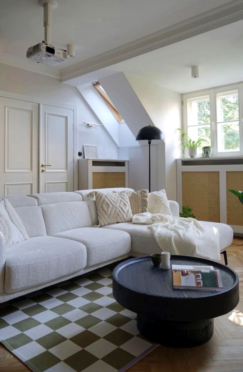 Stylowy miks rozwiązań i kolorów – aranżacja 70-metrowego mieszkania na poddaszu w warszawskiej kamienicy
