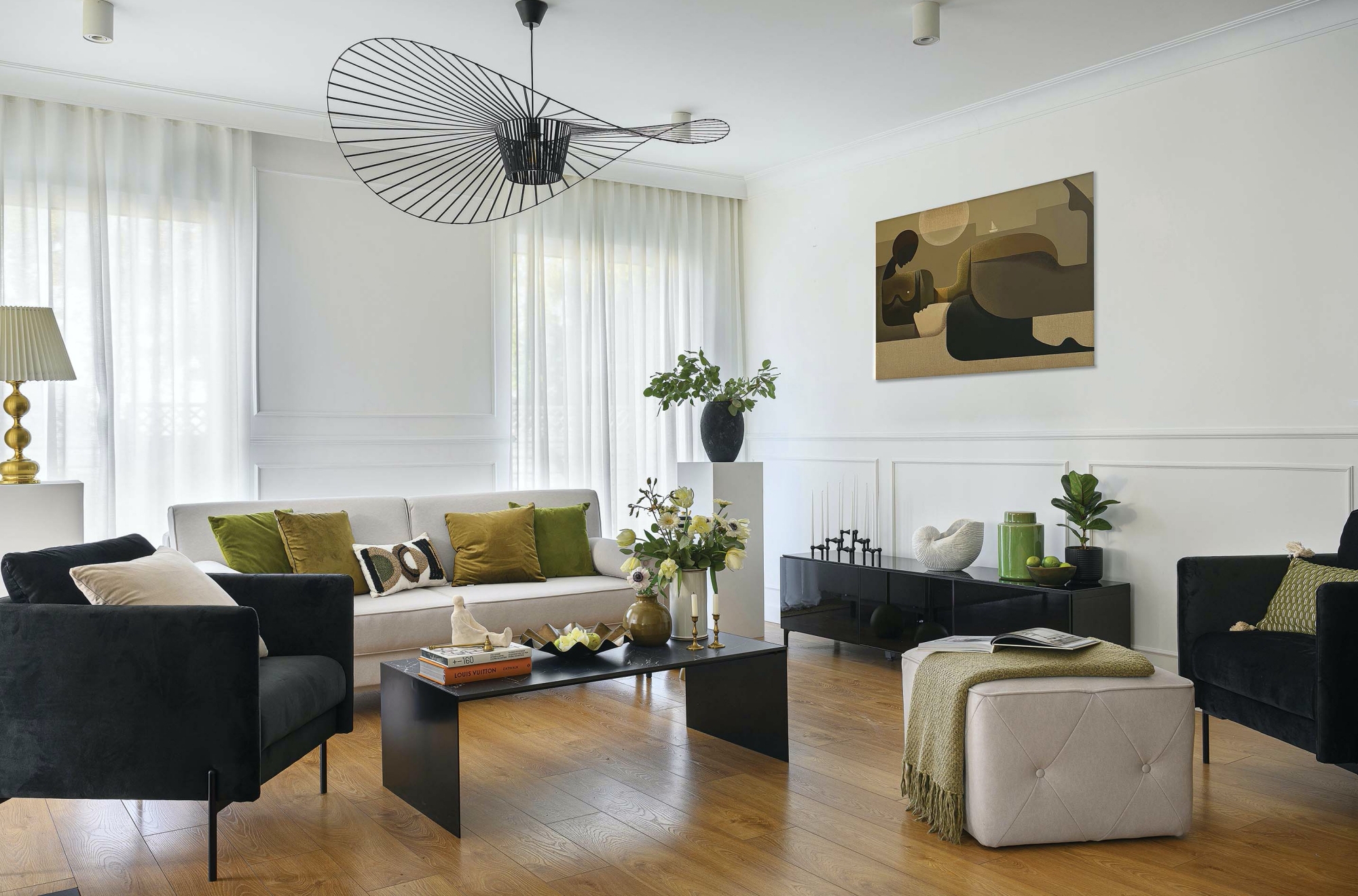 Przytulne i ponadczasowe czarno-białe wnętrza w lubuskim domu. Połączono w nich klasykę z elementami loftu