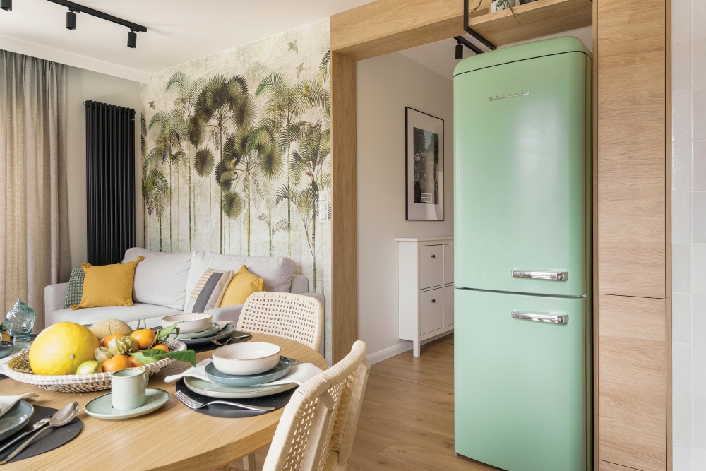 W tym 58-metrowym mieszkaniu cytrynowo-zielone akcenty wprowadziły relaksujący śródziemnomorski klimat. Na niedużej przestrzeni udało się pomieścić salon z otwartą kuchnią i dwie sypialnie dla studentek.