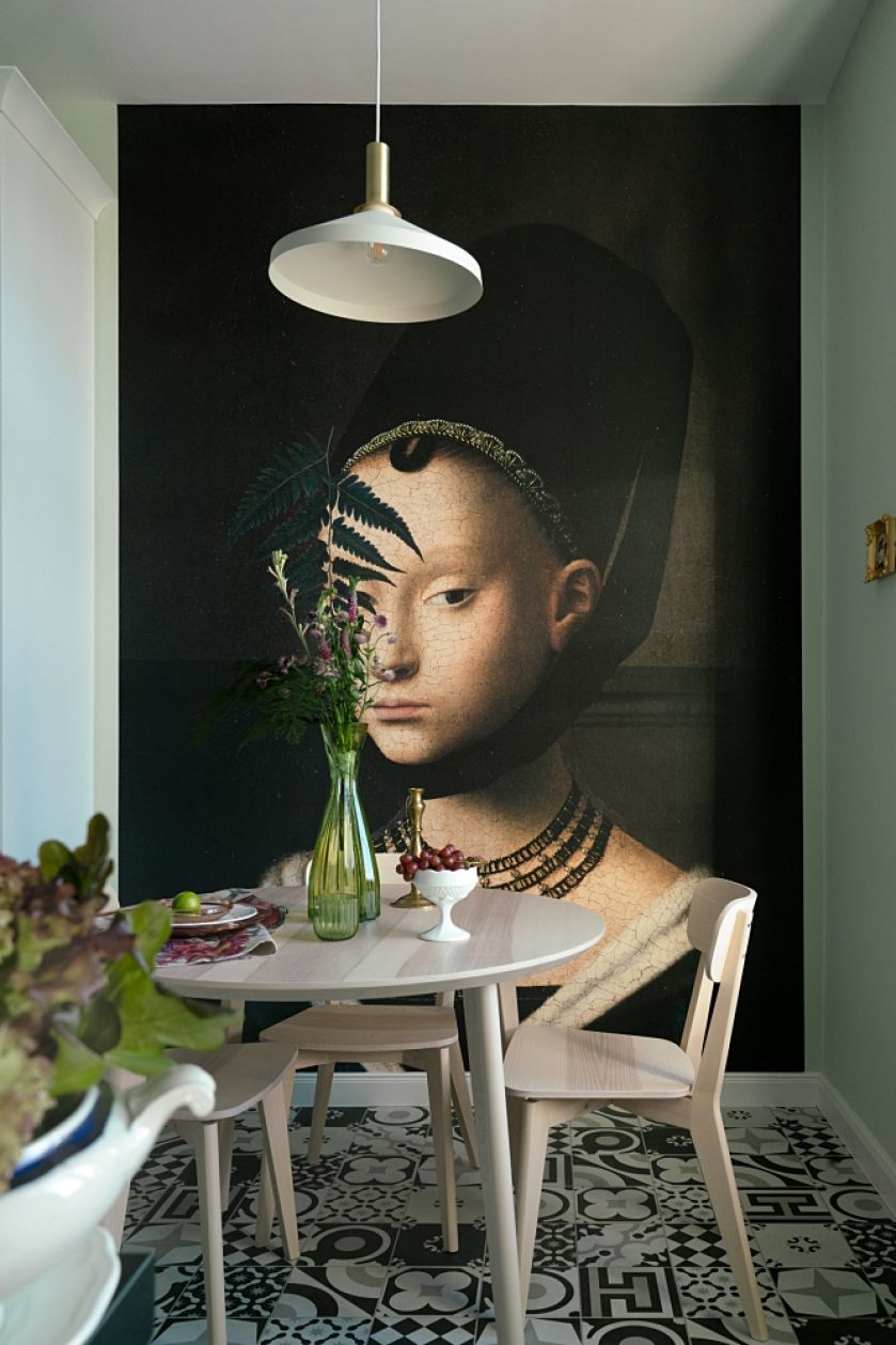 Wnętrze z malarską tapetą na ścianie – to 77-metrowe mieszkanie w kamienicy, mimo ograniczonego budżetu, jest eleganckie i pełne charakteru!
