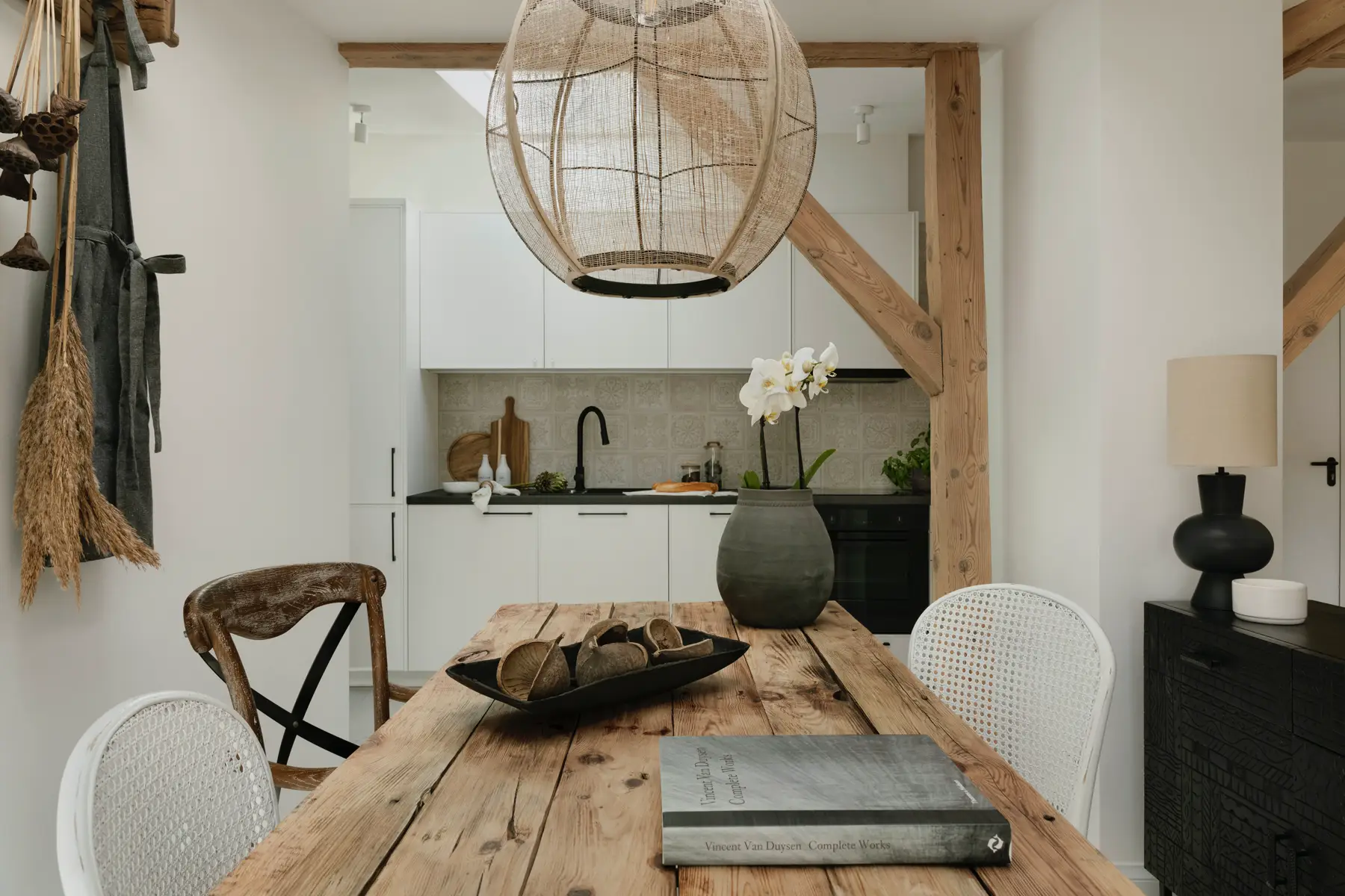 Biel, czerń i surowe drewno – mieszkanie 58 m2 na poddaszu z oknami połaciowymi w przedwojennej kamienicy