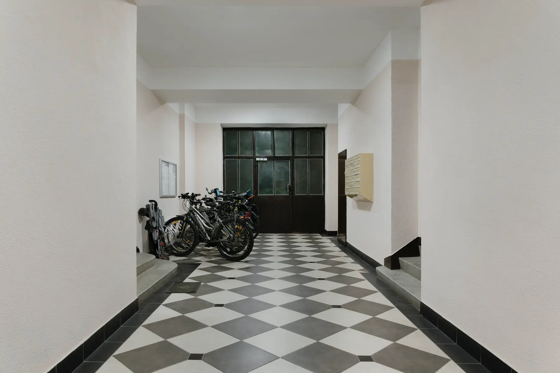Biel, czerń i surowe drewno – mieszkanie 58 m2 na poddaszu z oknami połaciowymi w przedwojennej kamienicy