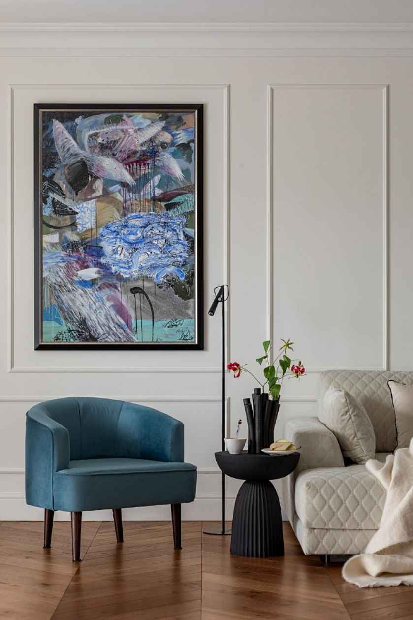 Francuska elegancja z nutą nowoczesności. Tak urządzono 130-metrowe mieszkanie pasjonatki kwiatów, sztuki i designu
