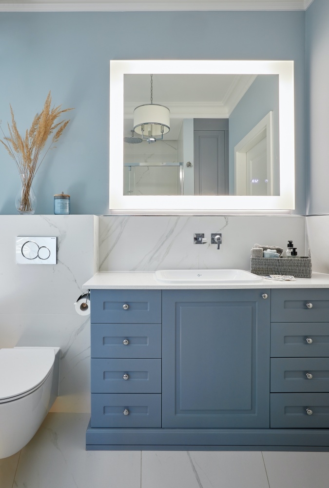 niebieskie meble łazienkowe