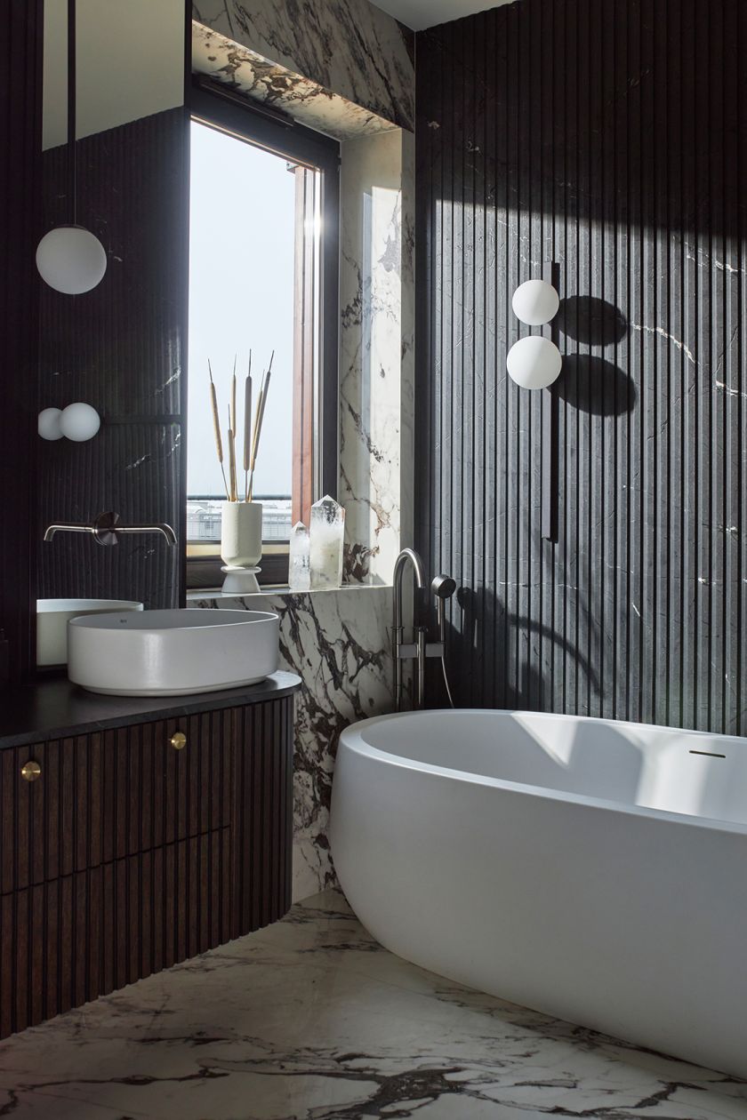 Przytulność kontra nowoczesność. Elegancki apartament pełen szlachetnych materiałów i nastrojowego światła