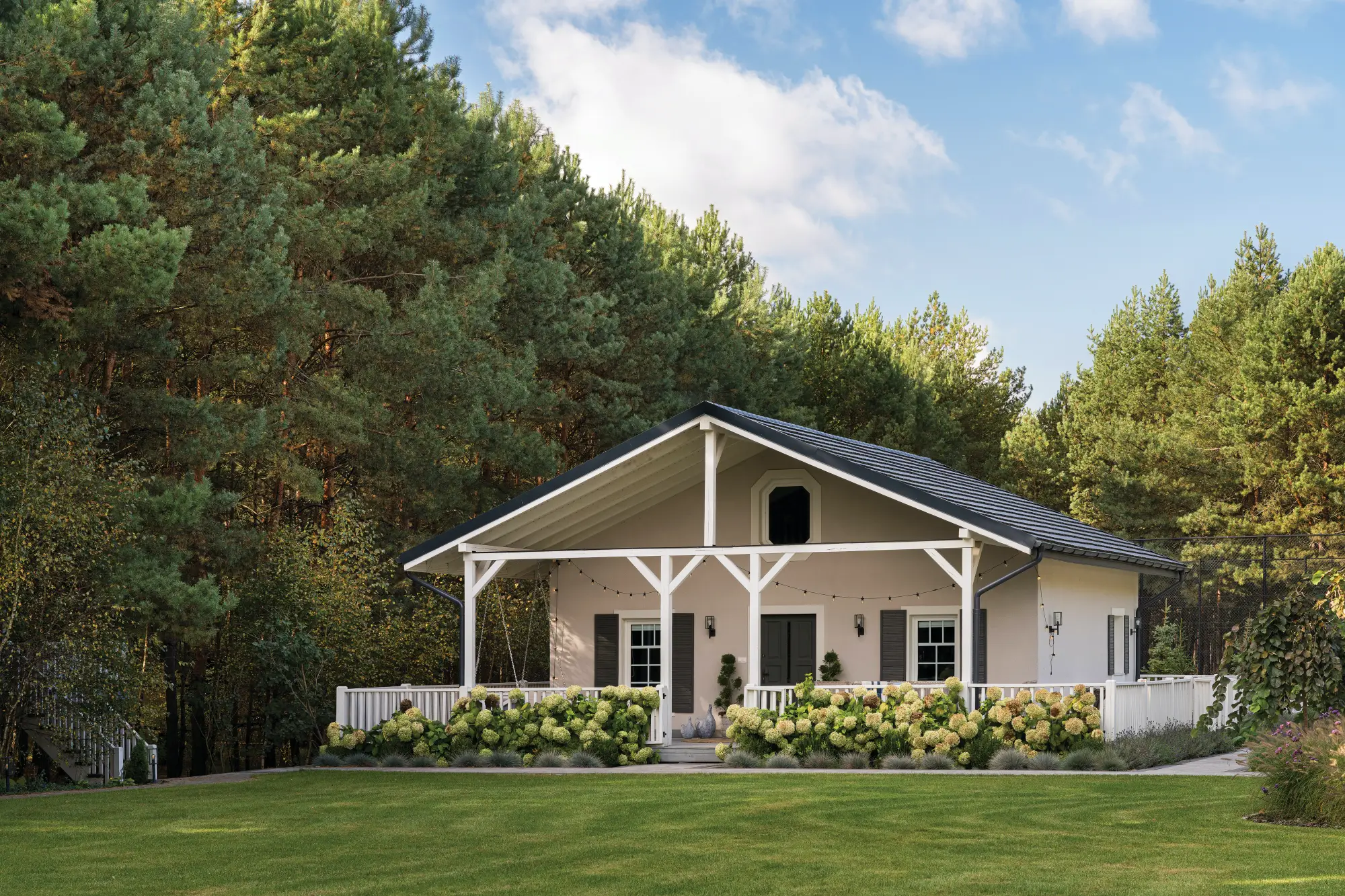 To z okien letniego domku Kasia Stefaniak obserwowała budowę swojego domu marzeń. Ten jest jego kameralną wersją. Przytulony do lasu, okolony tarasami i obrośnięty hortensjami rozpieszcza gości.