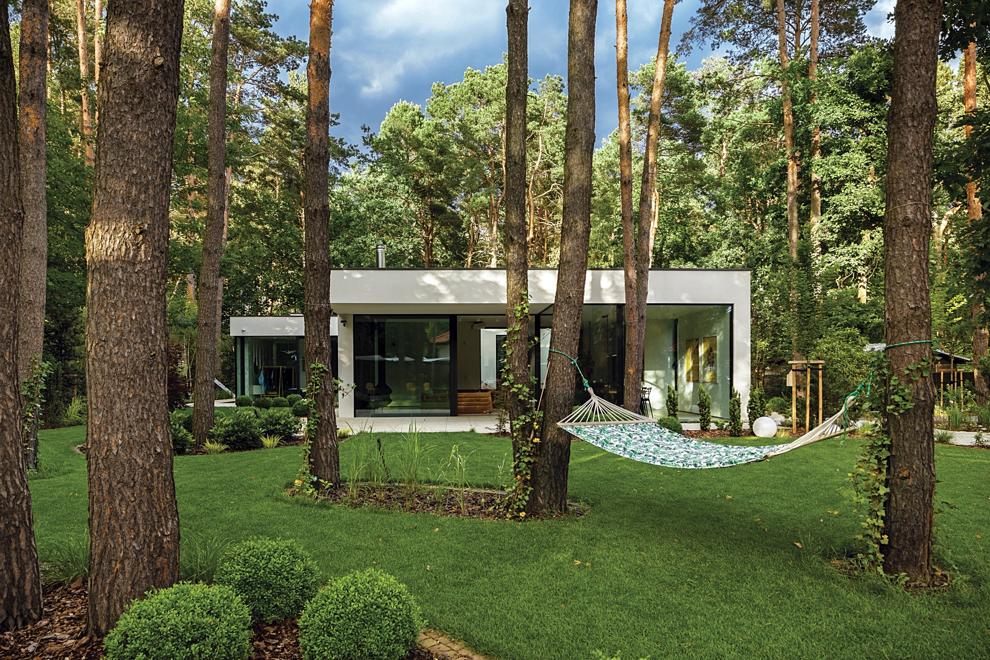 Nowoczesny przeszklony dom w sosnowym lesie – wnętrza ozdabia ciągle powiększana kolekcja malarstwa i rzeźby