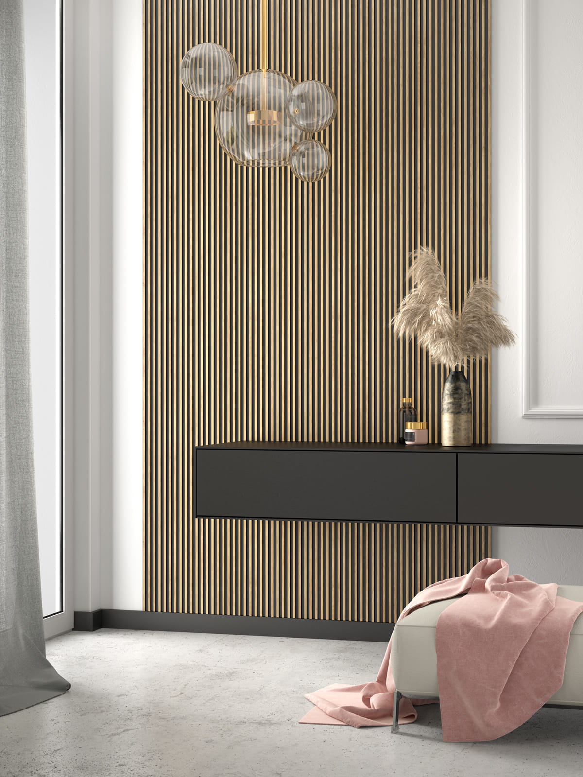 Lamele wprowadzają mnóstwo przytulności, mogą pełnić rolę zagłówka albo przepierzenia, które dzieli przestrzeń na strefy. To modny i praktyczny dodatek dekoracyjny do wnętrza. Zobacz, jak wykorzystać lamele w sypialni!