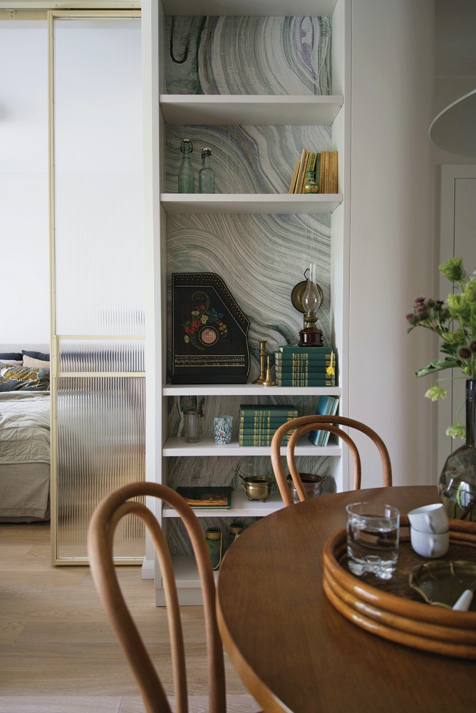 Aranżację mieszkania o powierzchni 42 m2 wyróżniają niewymuszona elegancja, miękkie linie i łagodne światło... To bardzo nastrojowa przestrzeń.