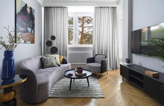 • nowoczesny apartament z klasycznymi detalami i odcieniami bieli i granatu