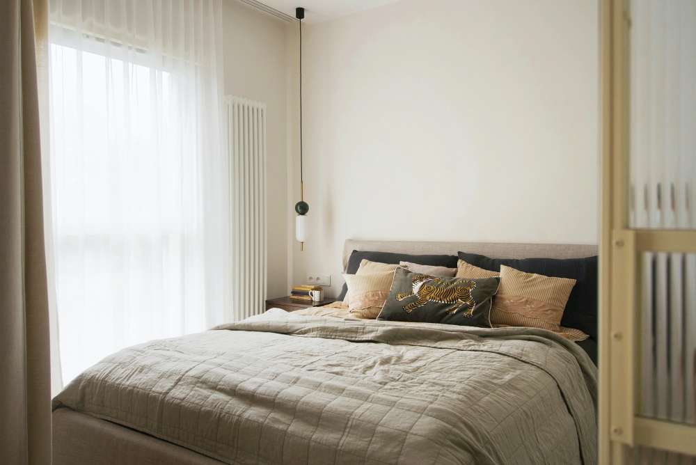 Aranżację mieszkania o powierzchni 42 m2 wyróżniają niewymuszona elegancja, miękkie linie i łagodne światło... To bardzo nastrojowa przestrzeń.
