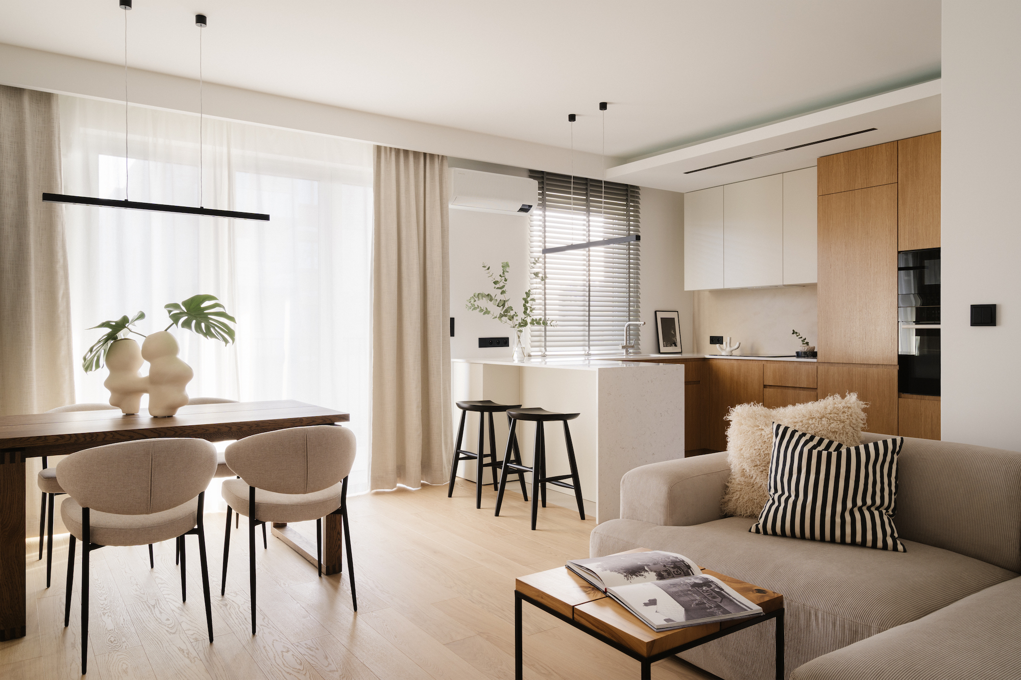 W zielonej części Warszawy, Magdalena Kanik, architektka wnętrz z Lys Studio zaprojektowała mieszkanie dla młodej pary. Na 80 m2 zaaranżowała apartament w stylu japandi – pełen spokoju, skandynawskiej przytulności i japońskiego minimalizmu.