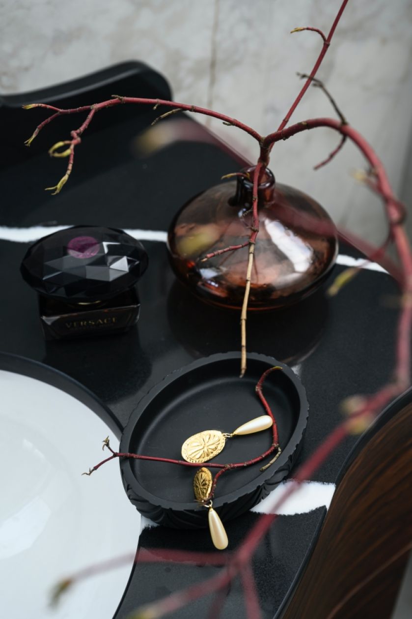 • łazienka beżowo czarna