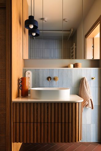• zielona szafka pod umywalkę w mieszkaniu w stylu modern farmhouse