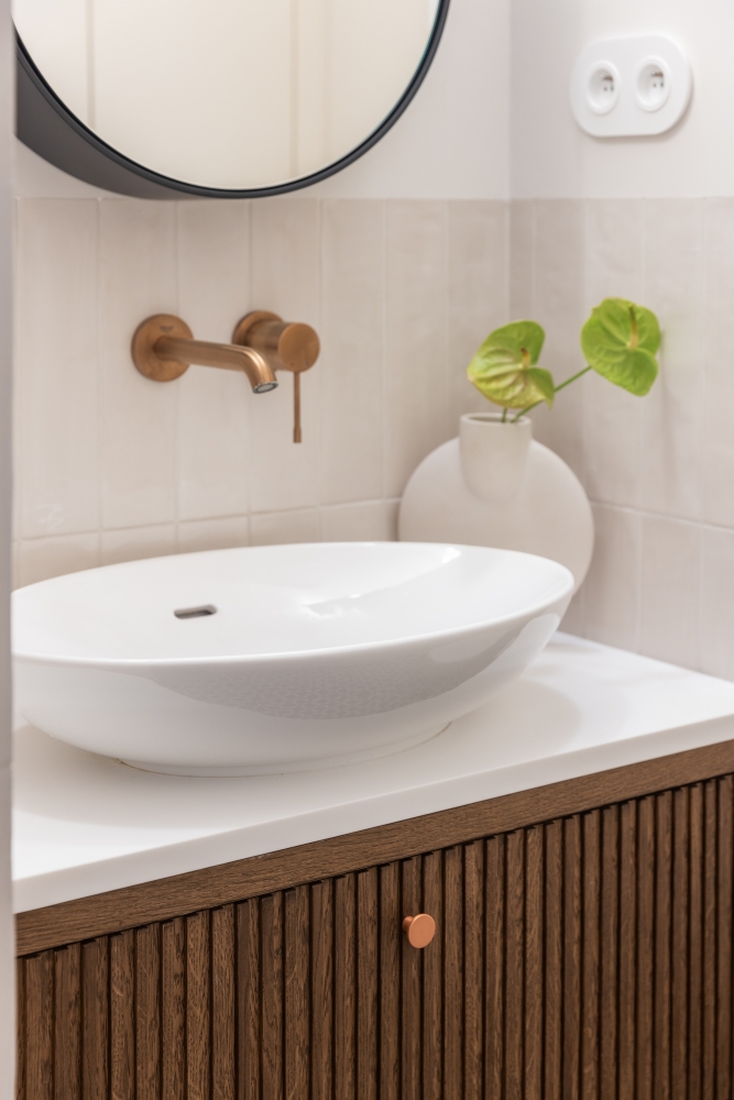 Jak pogodzić różne gusta, gdy ona kocha zieleń, a on – błękit? Projektantka obdzieliła tymi kolorami różne pomieszczenia 53-metrowego mieszkania. Łącznikiem są biel i naturalne drewno.
