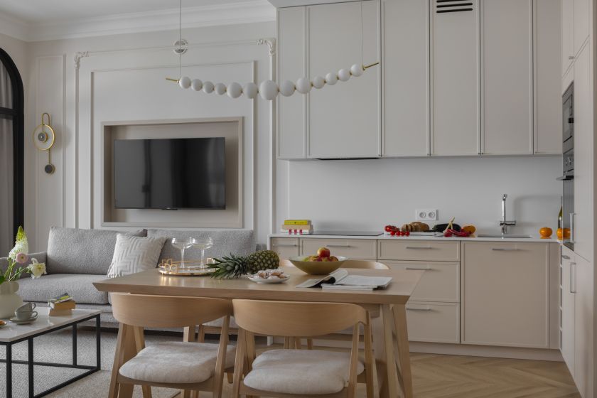 • nowoczesny apartament z klasycznymi detalami i odcieniami bieli i granatu
