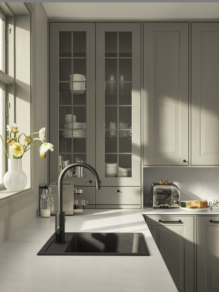 Są jak przeszklone miniwystawki, które pięknie wyeksponują zastawę, dekoracyjne dodatki. Dodadzą kuchni czy jadalni więcej lekkości a nawet metrów. Warto podświetlić je od środka, zestawić z pełnymi frontami i półkami, żeby nie było nudno. Szklane witryny kiedyś wieszało się równo na ścianie, dziś można je taż ustawiać na kuchennym blacie w formie nadstawek, budować z nich wyspy, aranżować przestrzeń w stylowych kredensach.