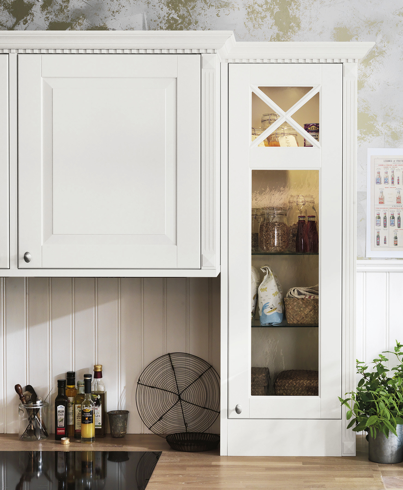 Są jak przeszklone miniwystawki, które pięknie wyeksponują zastawę, dekoracyjne dodatki. Dodadzą kuchni czy jadalni więcej lekkości a nawet metrów. Warto podświetlić je od środka, zestawić z pełnymi frontami i półkami, żeby nie było nudno. Szklane witryny kiedyś wieszało się równo na ścianie, dziś można je taż ustawiać na kuchennym blacie w formie nadstawek, budować z nich wyspy, aranżować przestrzeń w stylowych kredensach.