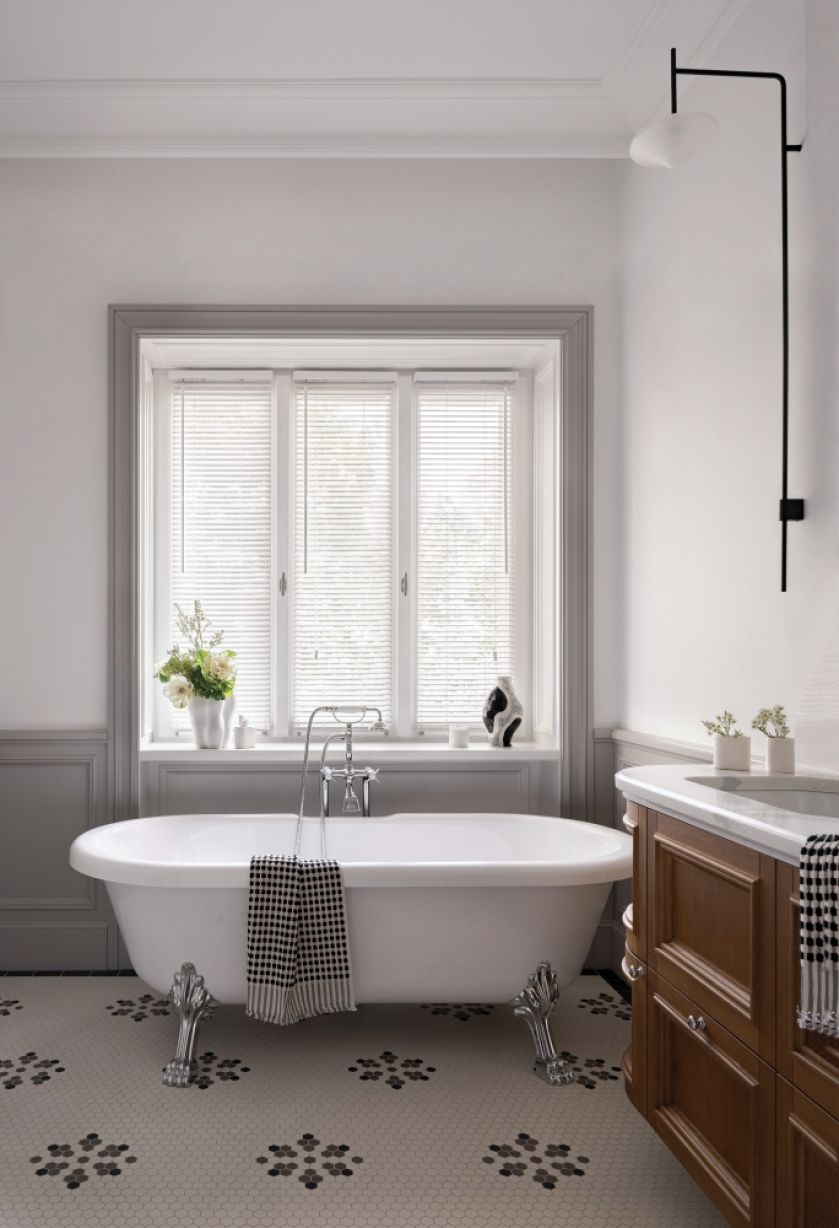 • elegancka wanna w łazience w mieszkaniu w kamienicy