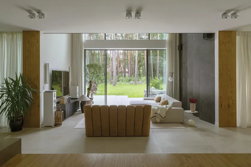 Przytulny minimalizm w domu pod Warszawą – cisza, harmonia i spokój wśród mazowieckich sosen