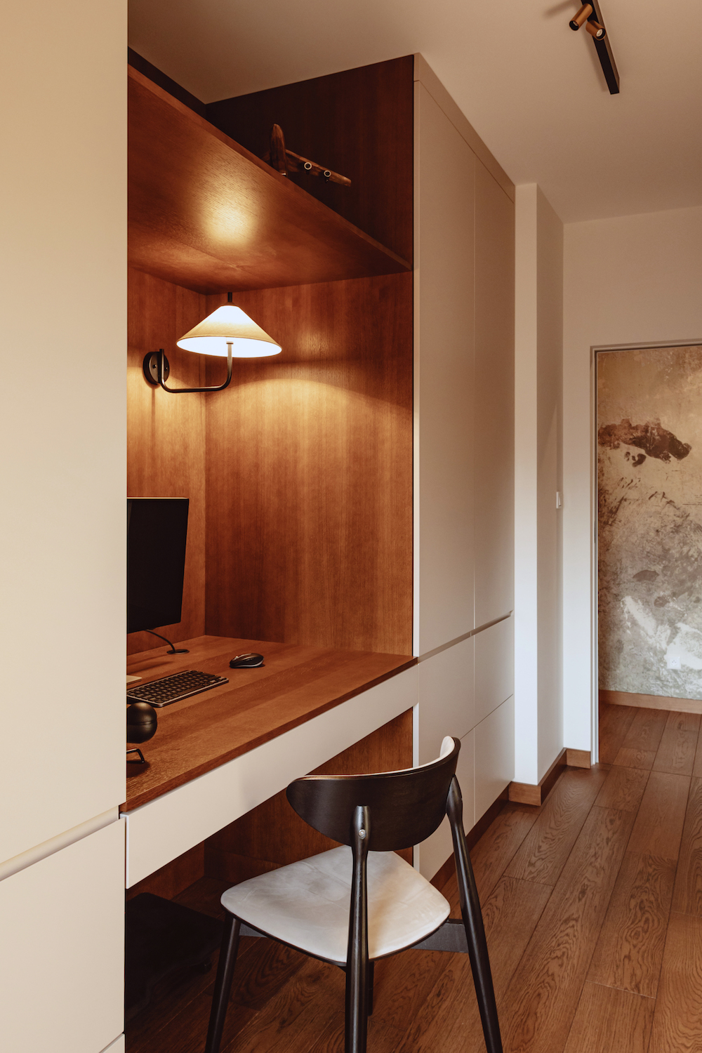 Utrzymane w orzechowej, monochromatycznej gamie kolorystycznej 93-metrowe mieszkanie miało być oazą relaksu dla zapracowanego singla. Akcenty industrialne dodały całości wyrazistego charakteru.