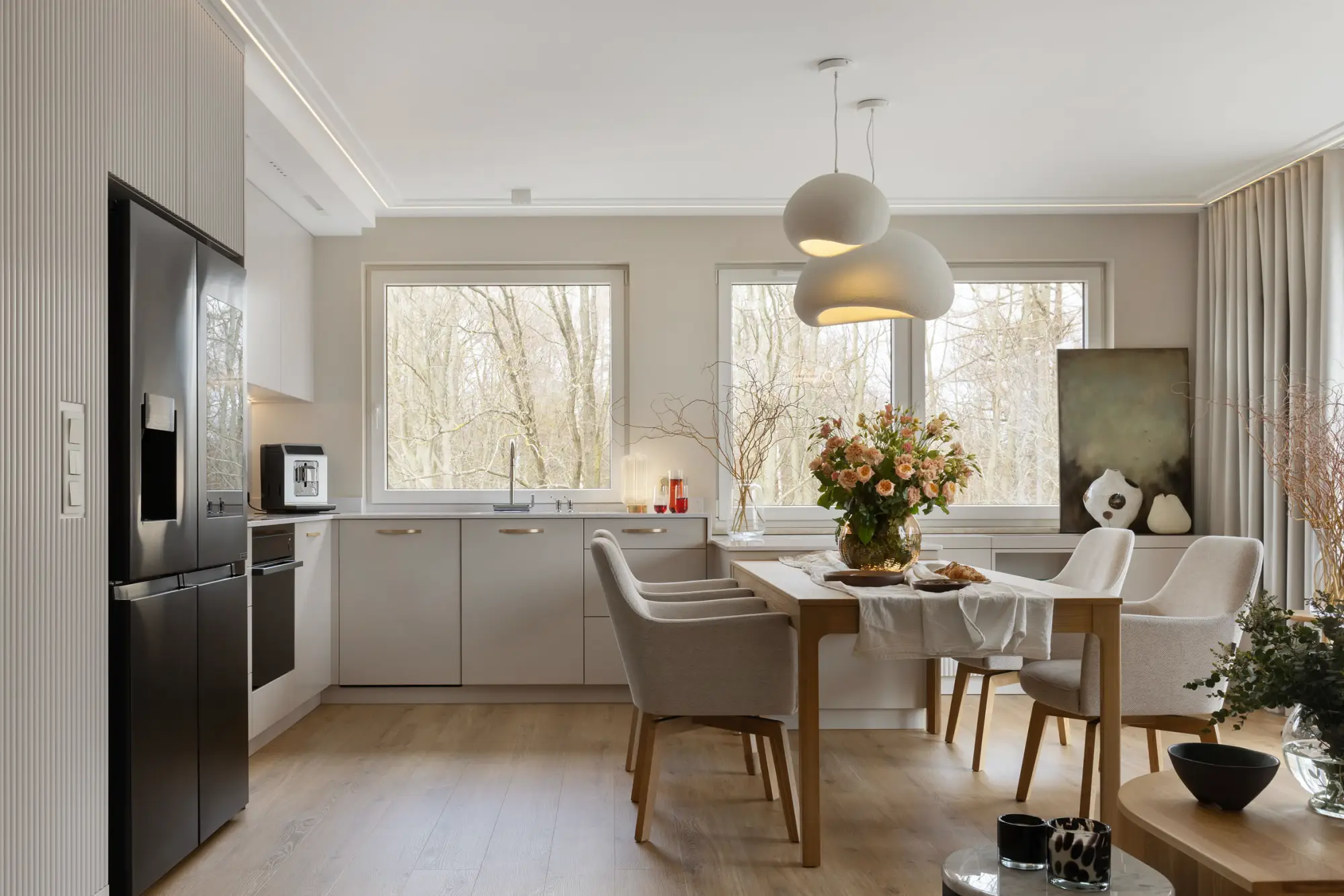 Mieszkanie w naturalnej palecie odcieni taupe – total look w luksusowym nadmorskim apartamencie
