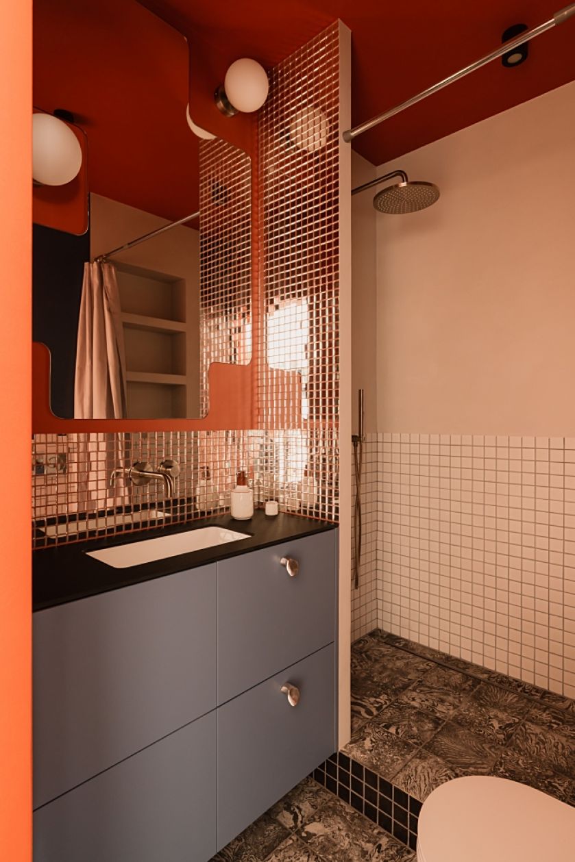 Dużo geometrycznych form, kolorów i luster, w których odbija się zaaranżowana ze smakiem eklektyczna przestrzeń. Zobacz, jak swoje warszawskie mieszkanie urządziła architektka wnętrz Klaudia Utracik z pracowni Klu Studio.