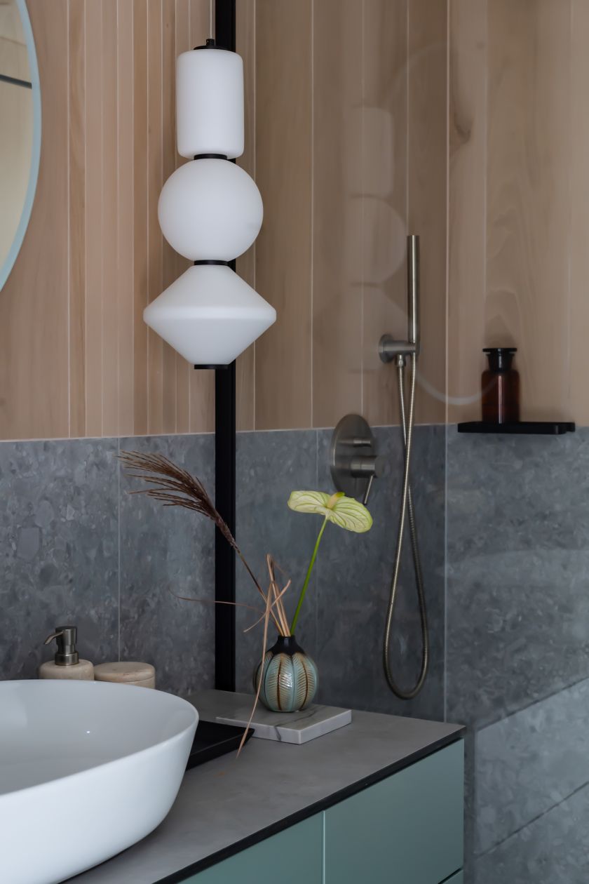 • łazienka z drewnem w mieszkaniu w kamienicy