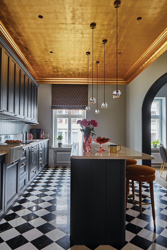 • sufit dekorowany płatkami złota w kuchni