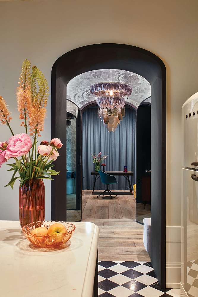 Stylowo, ekstrawagancko, z kolorem. Tak urządziła mieszkanie odważna i lubiąca niestandardowe rozwiązania Claudia. Apartament ze złotym sufitem i kinem domowym to udany miks sztukaterii z nutą rocka.