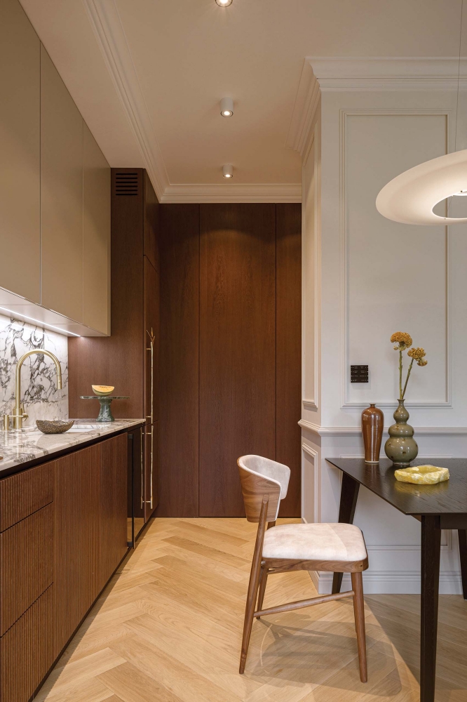 Od uchwytu do lodówki w kształcie gałązki po specjalnie zaprojektowaną szufladę na chleb – w każdym detalu to mieszkanie zachwyca stylem i funkcjonalnością.