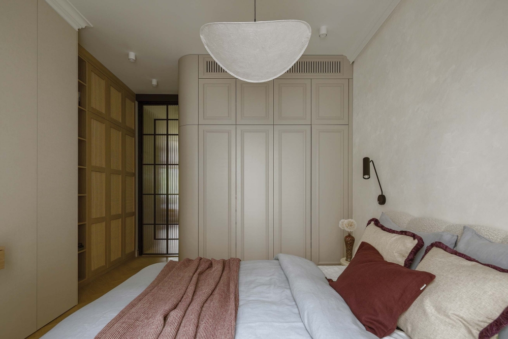• beżowa sypialnia