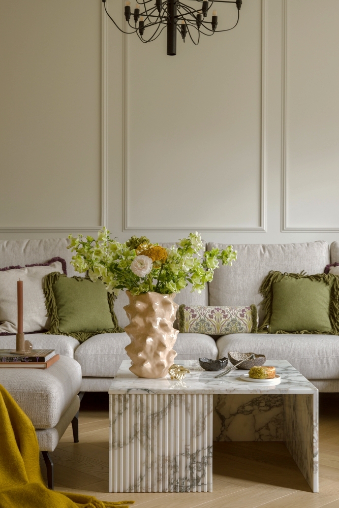 Marmur, sztukaterie i wysmakowane detale – zachwycające mieszkanie krakowskiej florystki
