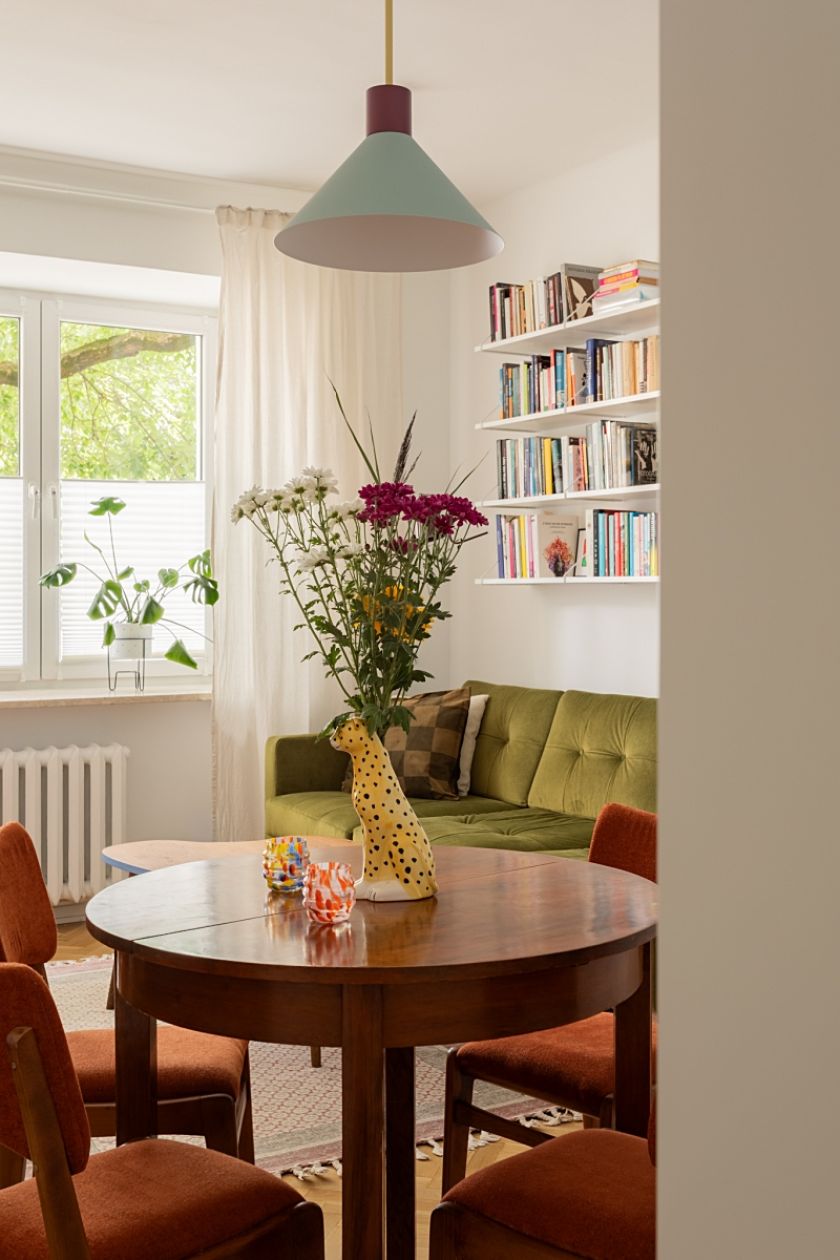 Mieszkanie 62 m2 w modernistycznej kamienicy na warszawskim Żoliborzu – z oryginalnym parkietem i meblami z lat 50. XX w.