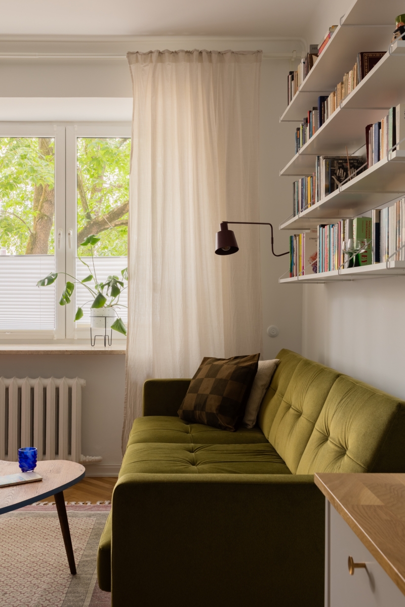 Mieszkanie 62 m2 w modernistycznej kamienicy na warszawskim Żoliborzu – z oryginalnym parkietem i meblami z lat 50. XX w.