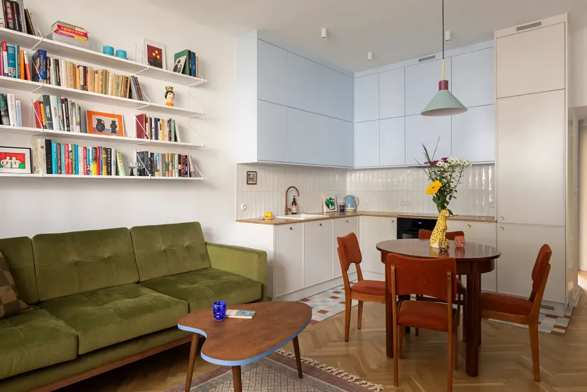 To mieszkanie na warszawskim Żoliborzu przywraca ducha lat 50. XX w., interpretując styl powojennego modernizmu współczesnym językiem – z szacunkiem do oryginału i świadomością historii.