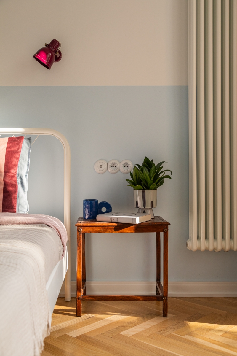 sypialnia stylu vintage w mieszkaniu w modernistycznej kamienicy