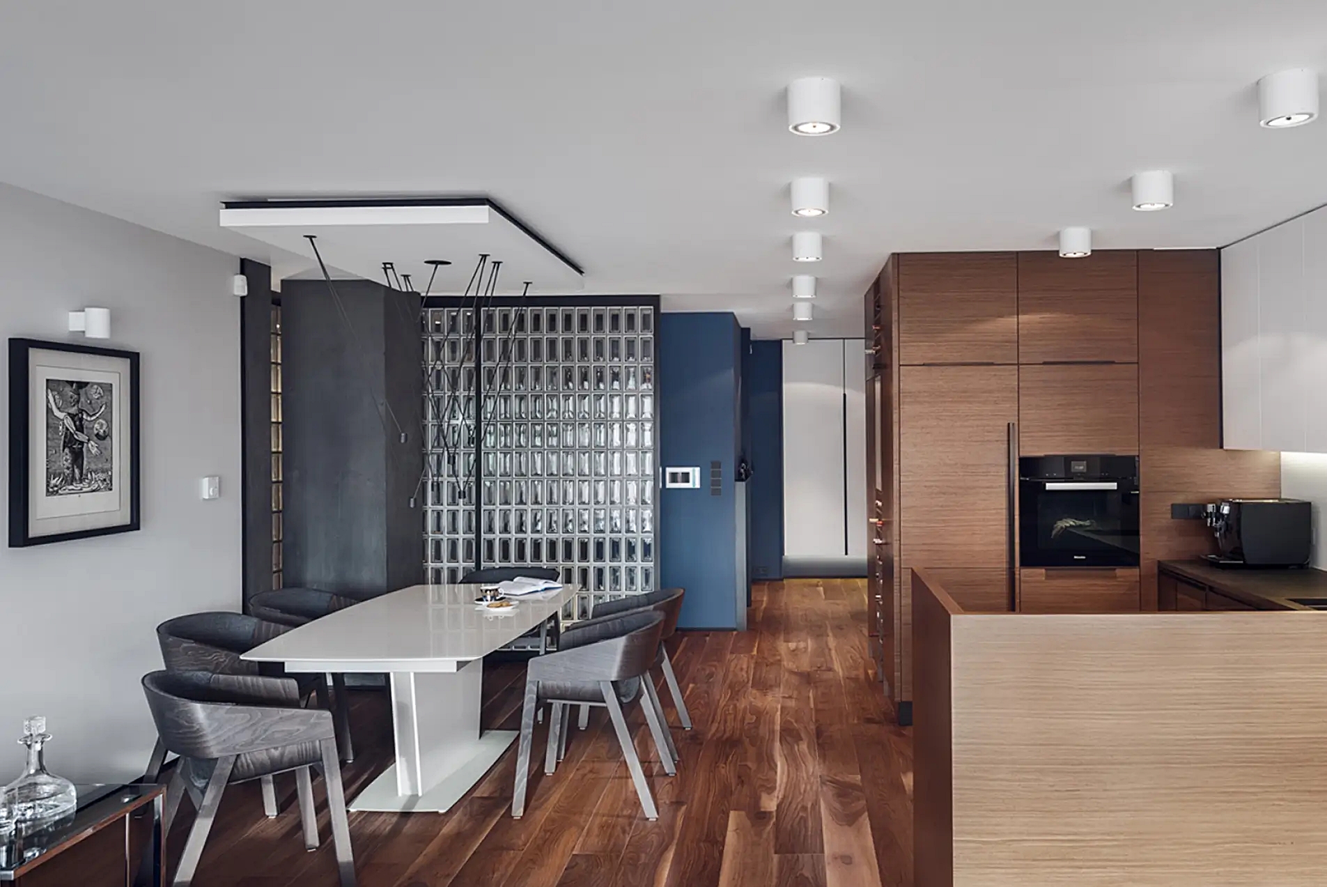 • narożnik z luksferów we wnętrzu