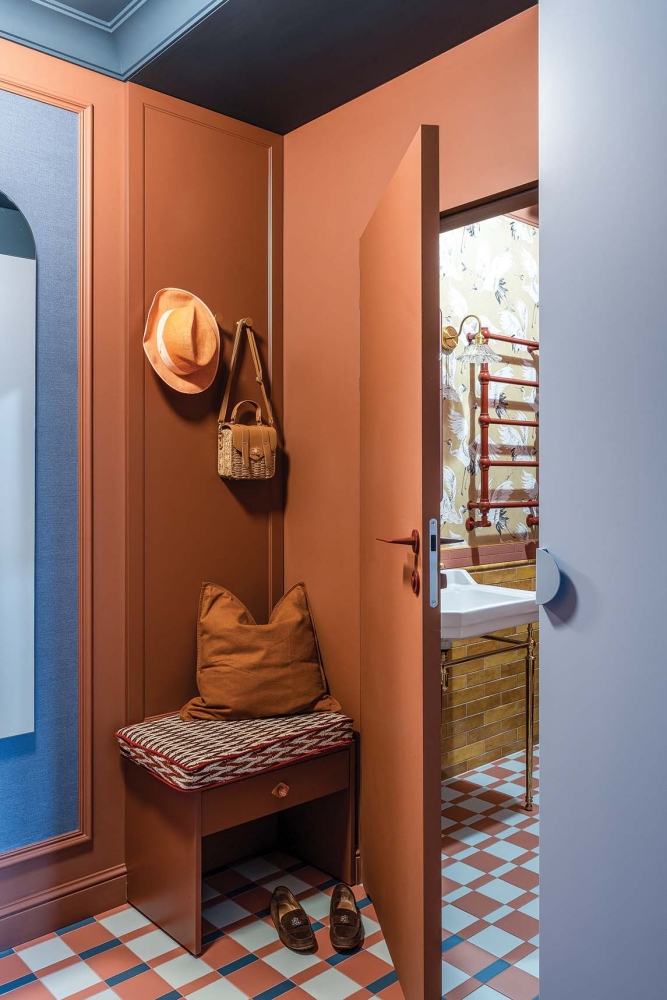 Kolorowe, ciepłe mieszkanie urządzone z fantazją. Są w nim przytulny kącik pod schodami, domowa biblioteka z barkiem i kolekcja winyli. Zajrzyj do środka!