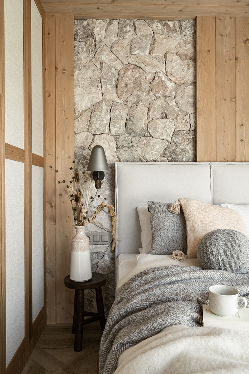 • sypialnia w przytulnym górskim stylu