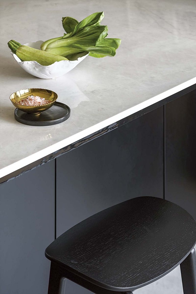 • wyspa kuchenna z ciemnego ryflowanego drewna