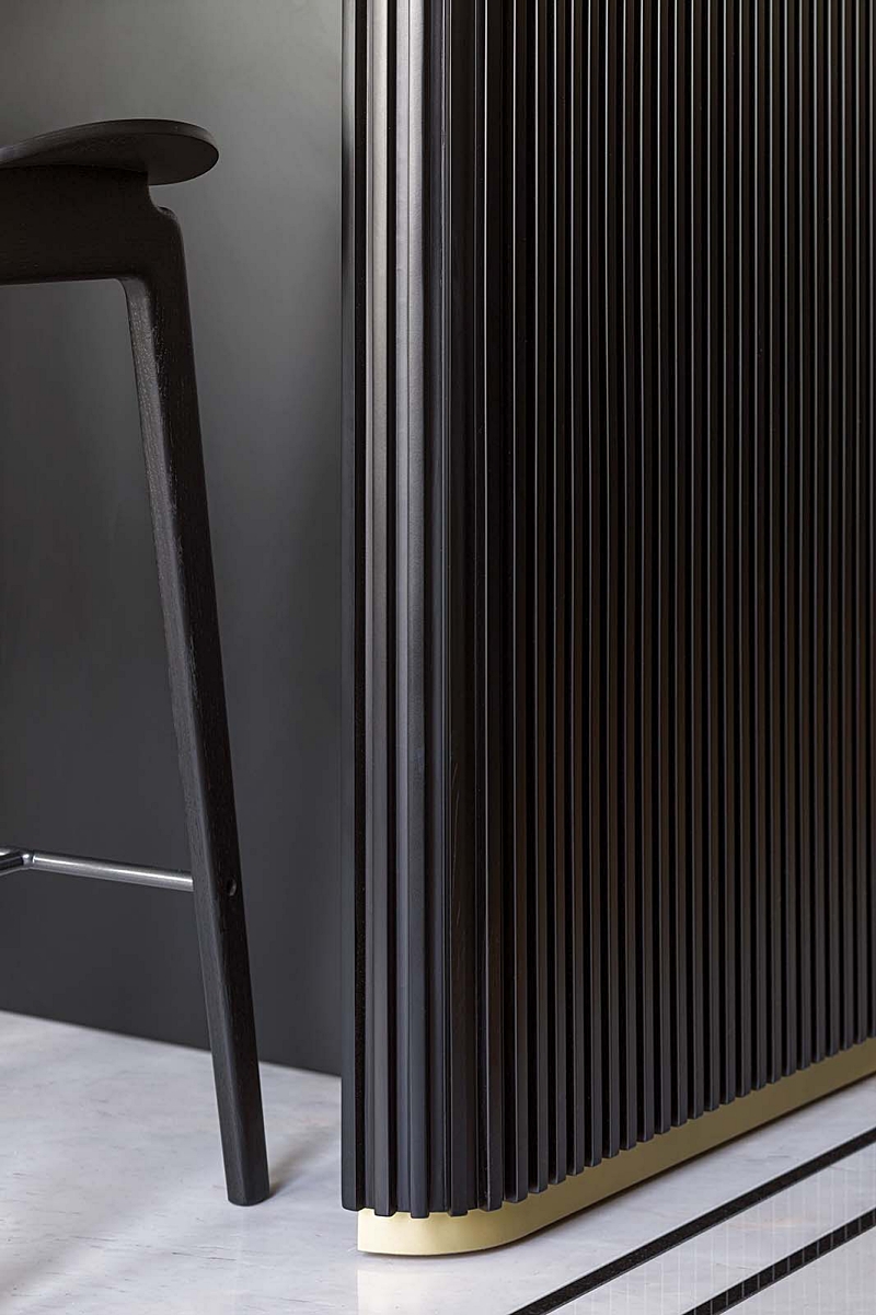 • wyspa kuchenna z ciemnego ryflowanego drewna