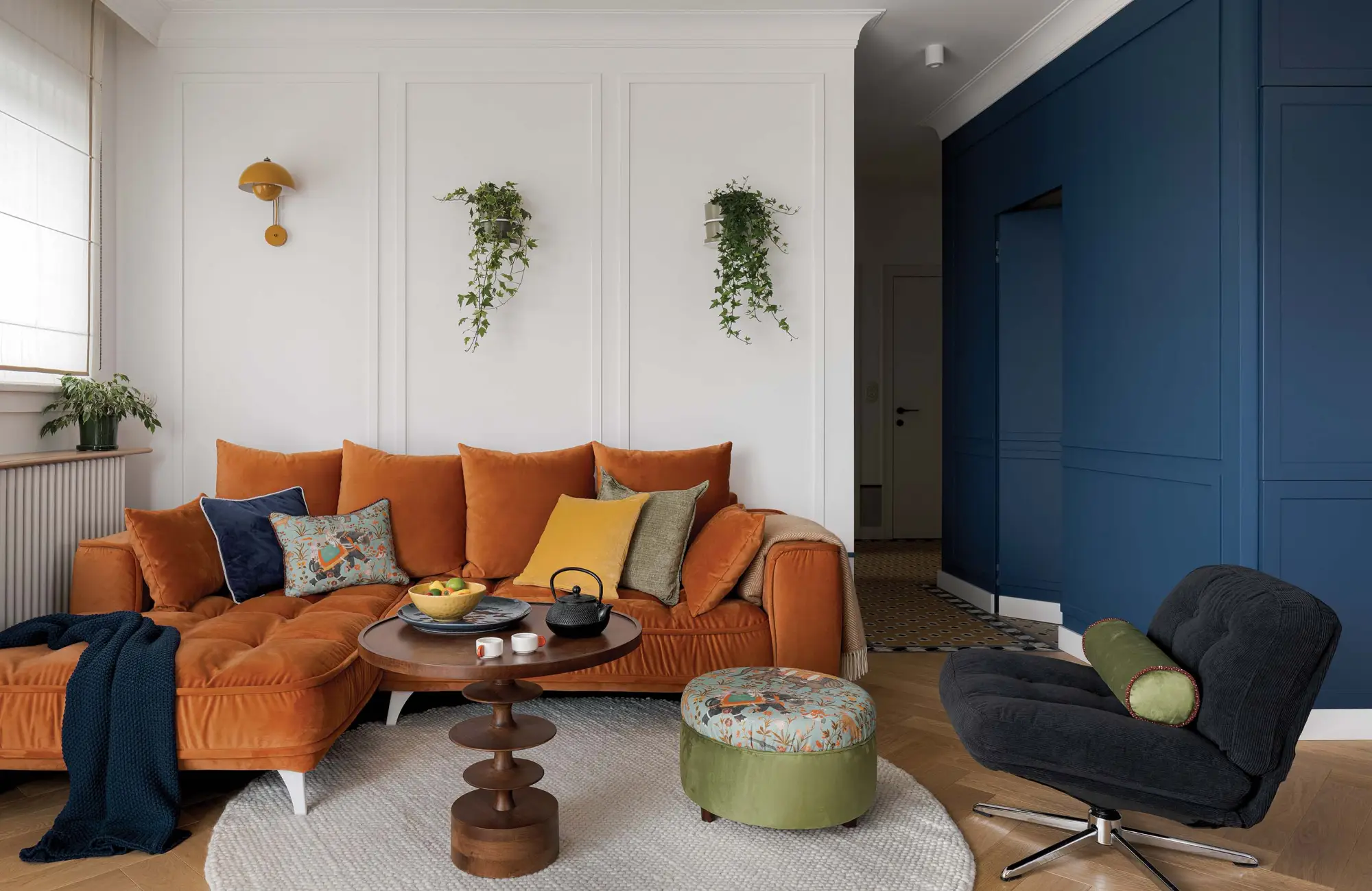 • pomarańczowy narożnik w salonie