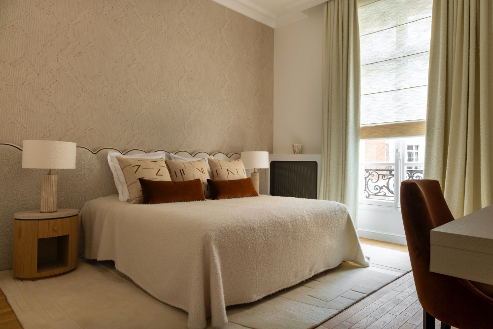 • sypialnia w luksusowym apartamencie w Paryżu projektu Stephanie Coutas