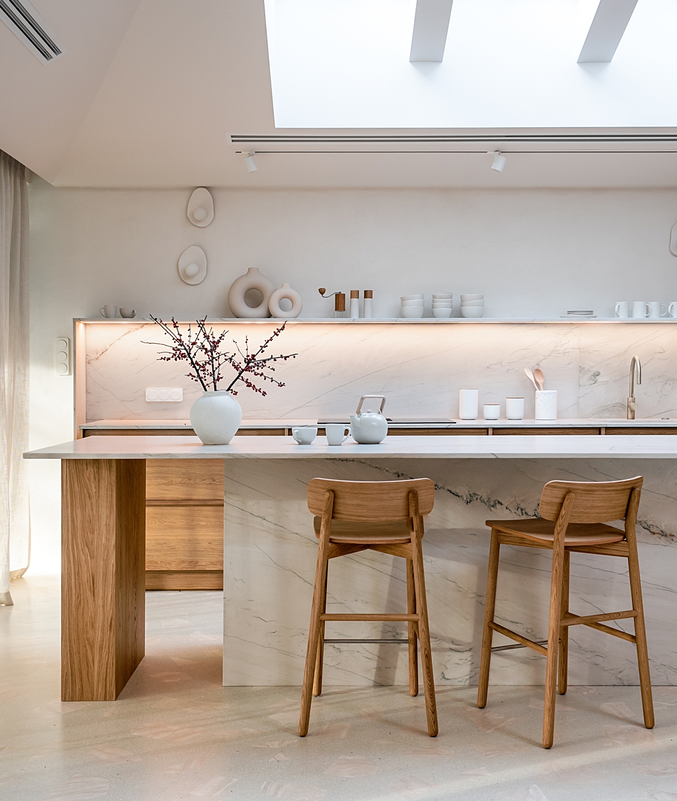 Jak urządzić kuchnię w stylu japandi? Projekt ernestrust to połączenie dębowego drewna, kamienia i rzemiosła, które widać w każdym detalu.