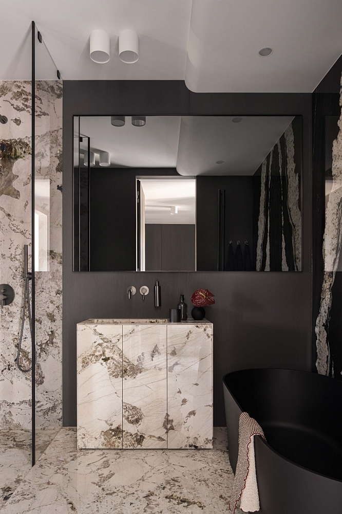 Kuchnia, której nie widać i wanna z widokiem na Wisłę. Ten apartament w Porcie Praskim nie przestaje zadziwiać