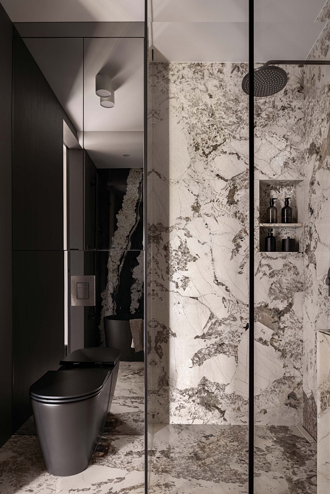 Jak urządzić ponad stumetrowy apartament w Porcie Praskim? Projektantka połączyła minimalizm z dekoracyjnym kwarcytem, dymionym szkłem i meblami z duszą. To wnętrze, które zaskakuje!