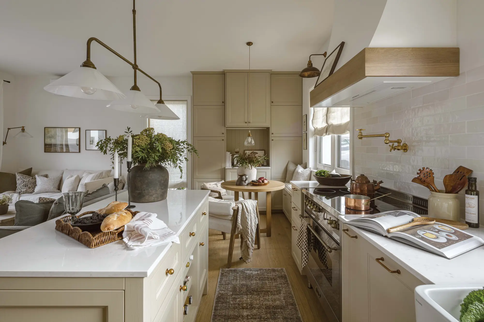 • beżowa kuchnia w stylu farmhouse