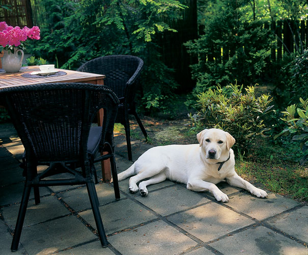 Trzy ogródki, jeden od strony wjazdu, drugi kameralny za domem, a trzeci w patio, sprawiają wrażenie, jakby zieleni było