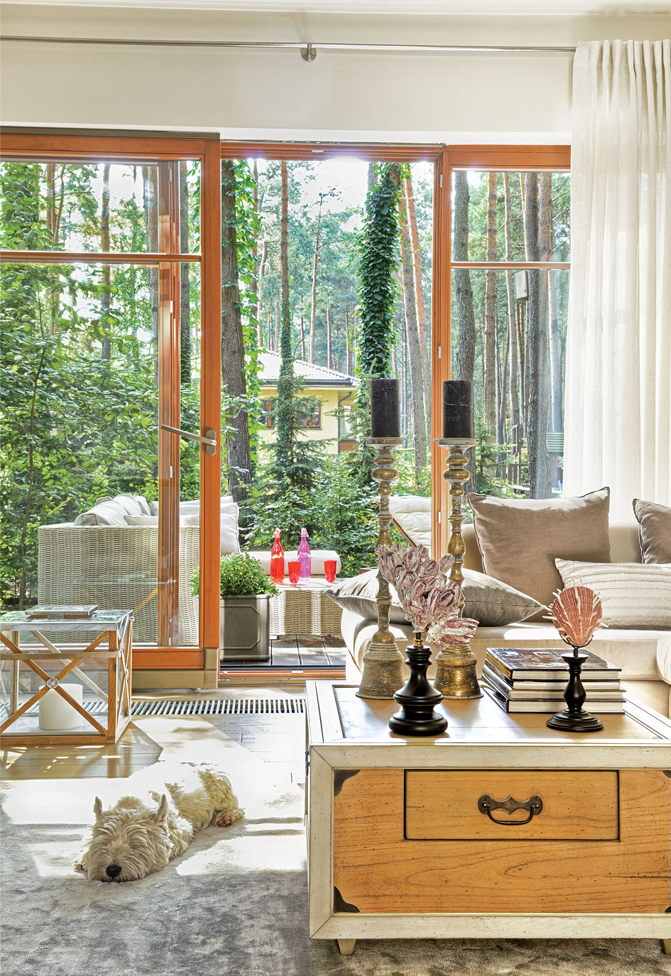 Chociaż dom jest gęsto otoczony drzewami, ma magiczne światło. Dzięki sosnom, które do późnego wieczora odbijają słońce. Decyzja o kupnie zapadła błyskawicznie...